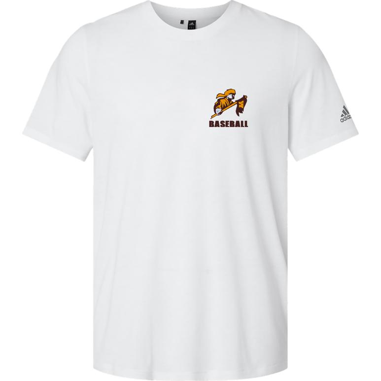 • 4.1 oz. 65/35 recycled polyester/cotton,Regular fit,Ribbed collar,Contrast adidas logo on left sleeve